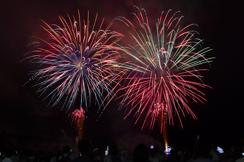 初日の7月31日は、芦ノ湖の守り神、九頭龍明神を崇めるお祭り「湖水祭」が開催され、夜は元箱根湾を舞台に花火が打ち上げられ、芦ノ湖の夜空を鮮やかに彩ります。